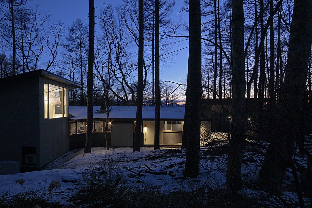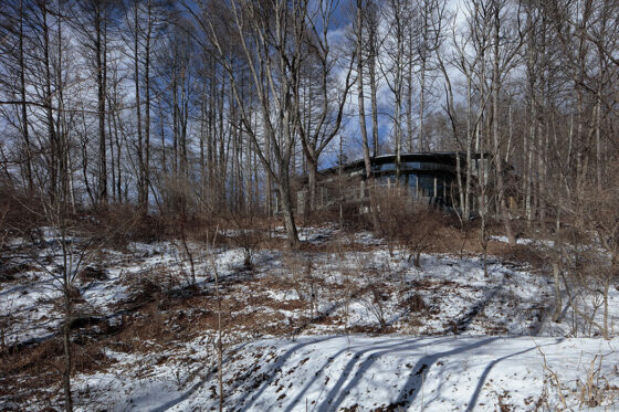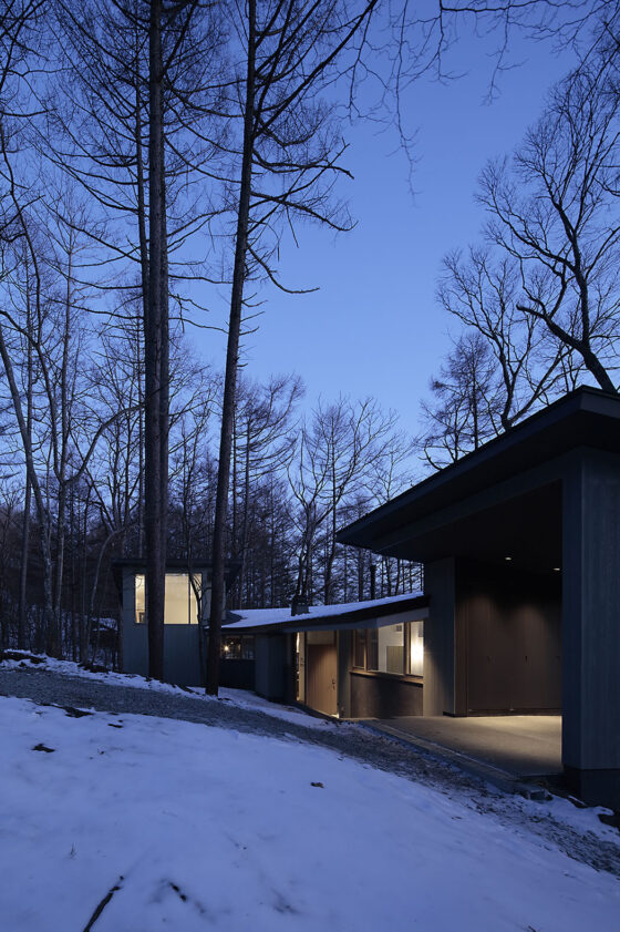 冬の夕暮れに浮かび上がる地形の稜線。 緩いカーブの景色とつながる。